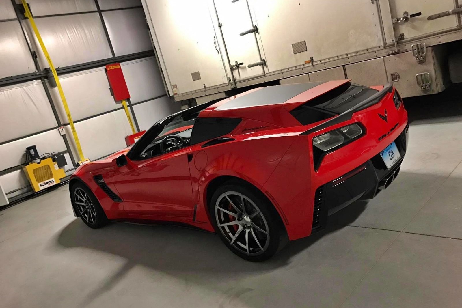 La línea del techo se mantiene baja, pero se prolonga hacia atrás hasta una pequeña luneta mucho más vertical. El resto del coche permanece intacto y las formas empleadas en la conversión no rompen en absoluto la imagen general del Corvette. Lo cierto es que queda espectacular, se nota que en Callaway le tienen cariño a estos deportivos. En el caso del techo targa, Callaway asegura que sigue siendo totalmente practicable y que el espacio de carga en la parte trasera se ha aumentado considerablemente.